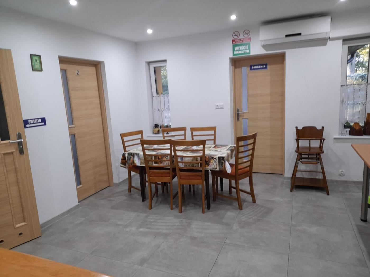 Dom wakacyjny. The fireplace is the standout feature of this holiday home. Guests will find a stovetop, a refrigerator, a dishwasher and kitchenware in the kitchen. The holiday home also comes with a barbecue. The holiday home features air conditioning, a washing machine, a terrace with garden views as well as a shared bathroom boasting a shower. The unit has 13 beds. Dom wakacyjny - 14 osobowy. Powierzchnia pokoju ok.: 100 mkw.