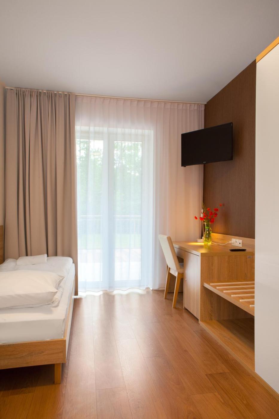 Pokój Jednoosobowy typu Budget. The single room has a private bathroom equipped with a bath or a shower and a hairdryer. This single room features a wardrobe, heating, a flat-screen TV with cable channels and garden views. The unit offers 1 bed. Pokój Jednoosobowy - 1 osobowy. Powierzchnia pokoju ok.: 9 mkw. ;
