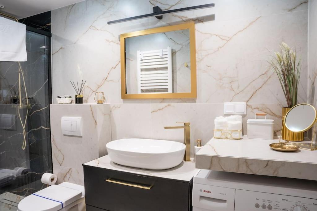 Apartament z 1 sypialnią. In the fully equipped kitchenette, guests will find a stovetop, a refrigerator, a dishwasher and a microwave. The apartment features air conditioning, a washing machine, a tea and coffee maker, heating and a flat-screen TV. The unit has 1 bed. Apartament - 2 osobowy. Powierzchnia pokoju ok.: 30 mkw.