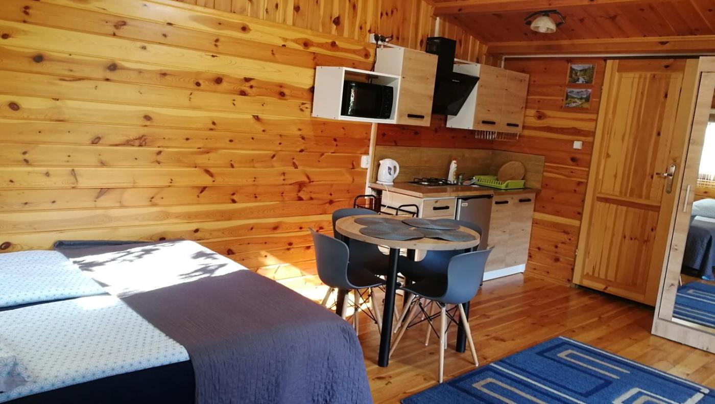 Domek. Boasting a private entrance, this chalet features a kitchen, 1 bedroom and 1 bathroom with a walk-in shower and a hairdryer. Guests will find a refrigerator and kitchenware in the kitchen. The chalet also comes with a barbecue. Featuring a terrace with garden views, this chalet also features soundproof walls and a flat-screen TV with cable channels. The unit has 3 beds. Domek - 4 osobowy. Powierzchnia pokoju ok.: 23 mkw.