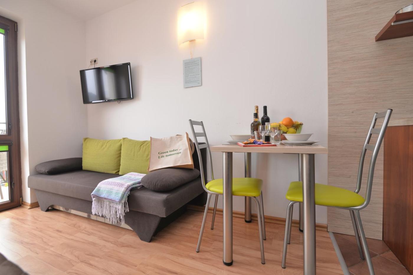 Apartament Rodzinny z 1 sypialnią. This apartment comprises 1 living room, 1 separate bedroom and 1 bathroom with a shower. The fully equipped kitchenette features a stovetop, a refrigerator, kitchenware and a microwave. This apartment has a seating area, a dining area, a flat-screen TV and a balcony. The unit offers 3 beds. Apartament - 4 osobowy. Powierzchnia pokoju ok.: 48 mkw. ;